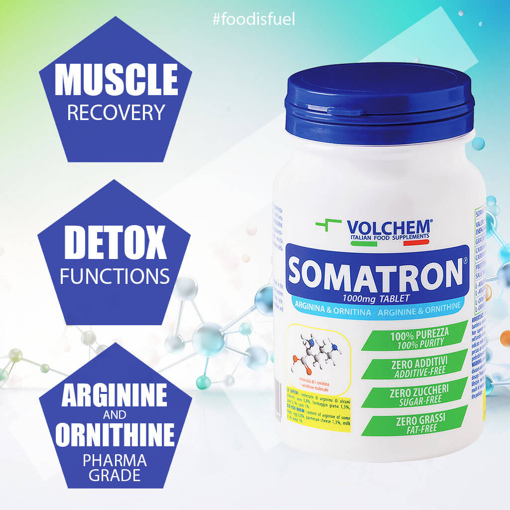 Vai al carrelloSomatron® è un integratore alimentare in compresse a base di L-arginina e L-ornitina, due aminoacidi in forma libera levogira che lavorano in sinergia nei principali processi metabolici legati all’attività fisica e al metabolismo proteico.